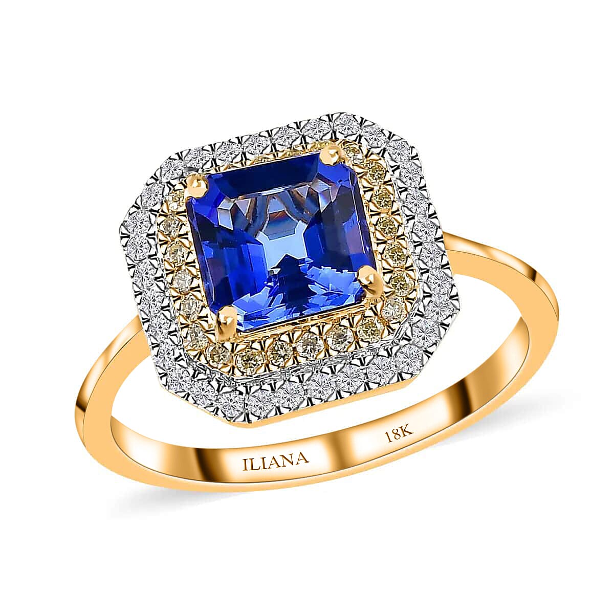 Iliana AAA Tanzanite Halo Ring, Tanzanite Ring, Natural Yellow and White Diamond Accent Ring,18K Yellow Gold Ring, Double Halo Ring, Wedding Rings 1.90 ctw