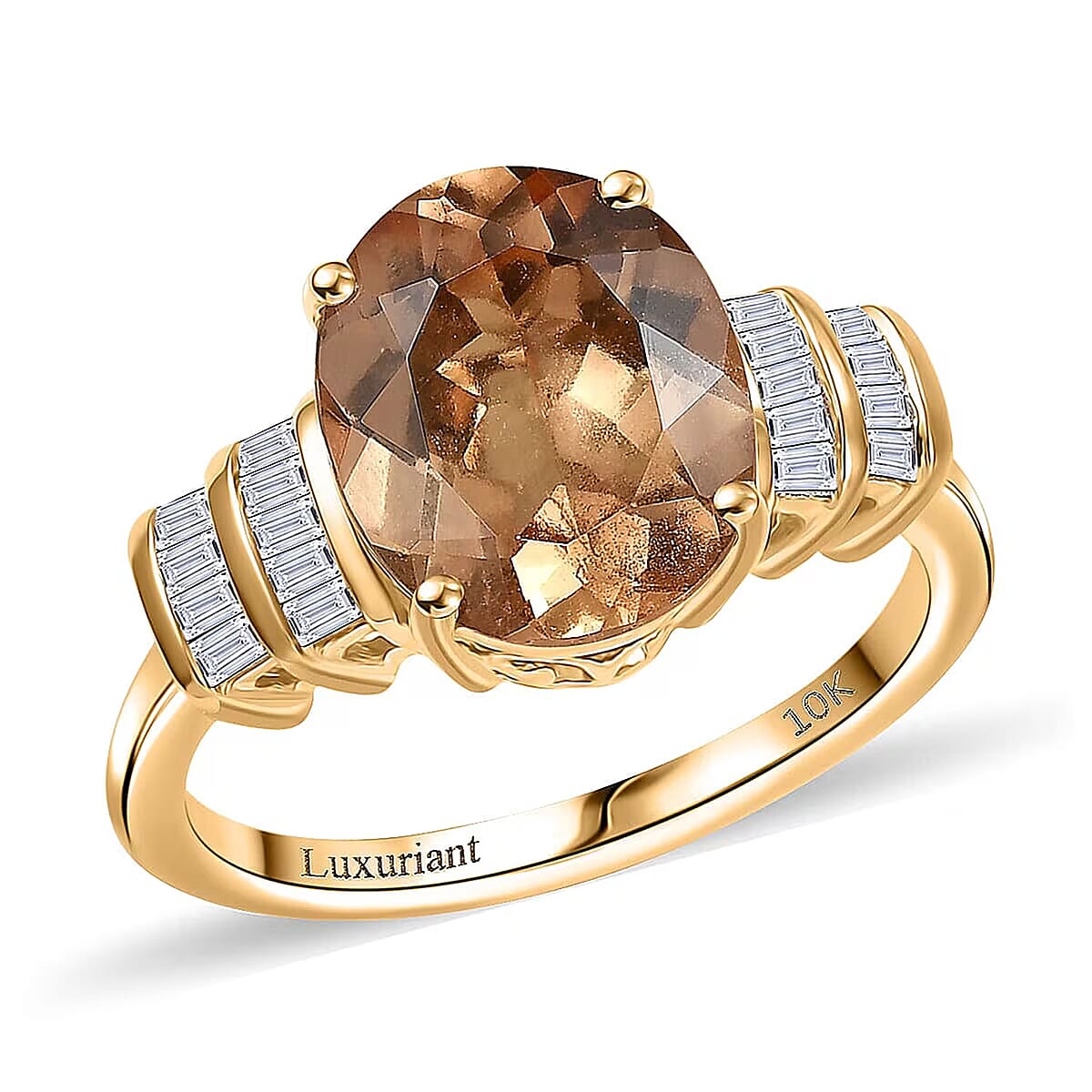 Flaunt brilliance with this imperial garnet ring in 10k yellow gold. The vibrant orange-yellow gemstone captures attention amid sparkling accents. Your sophisticated style finds expression through this elegant 10K yellow gold ring.