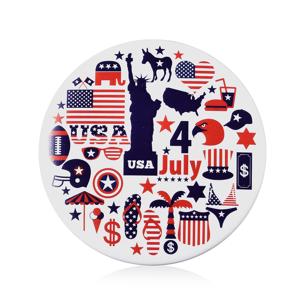 Independence Day Printed Brooch in Silvertone