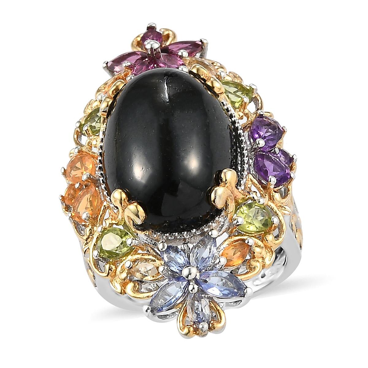 Indian Black Star Diopside and Multi Gemstone Cocktail Ring in Vermeil YG and Platinum Over Sterling Silver (Size 7.0) 20.35 ctw