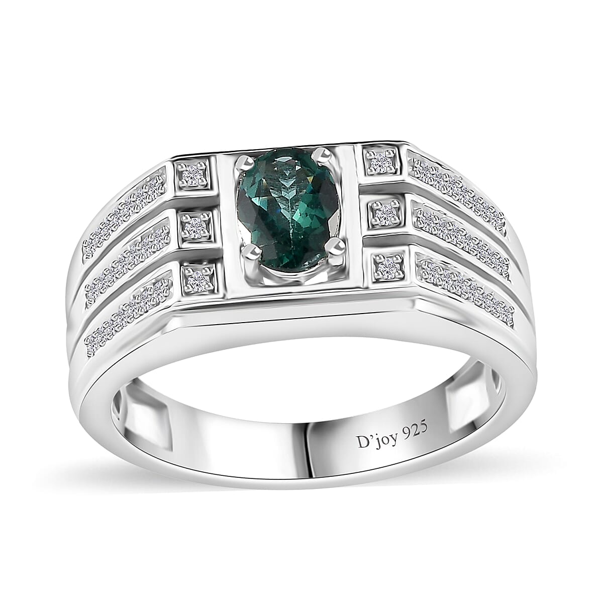 Indian Ocean Apatite and Moissanite Men's Ring in Platinum Over Sterling Silver (Size 12.0) 1.00 ctw
