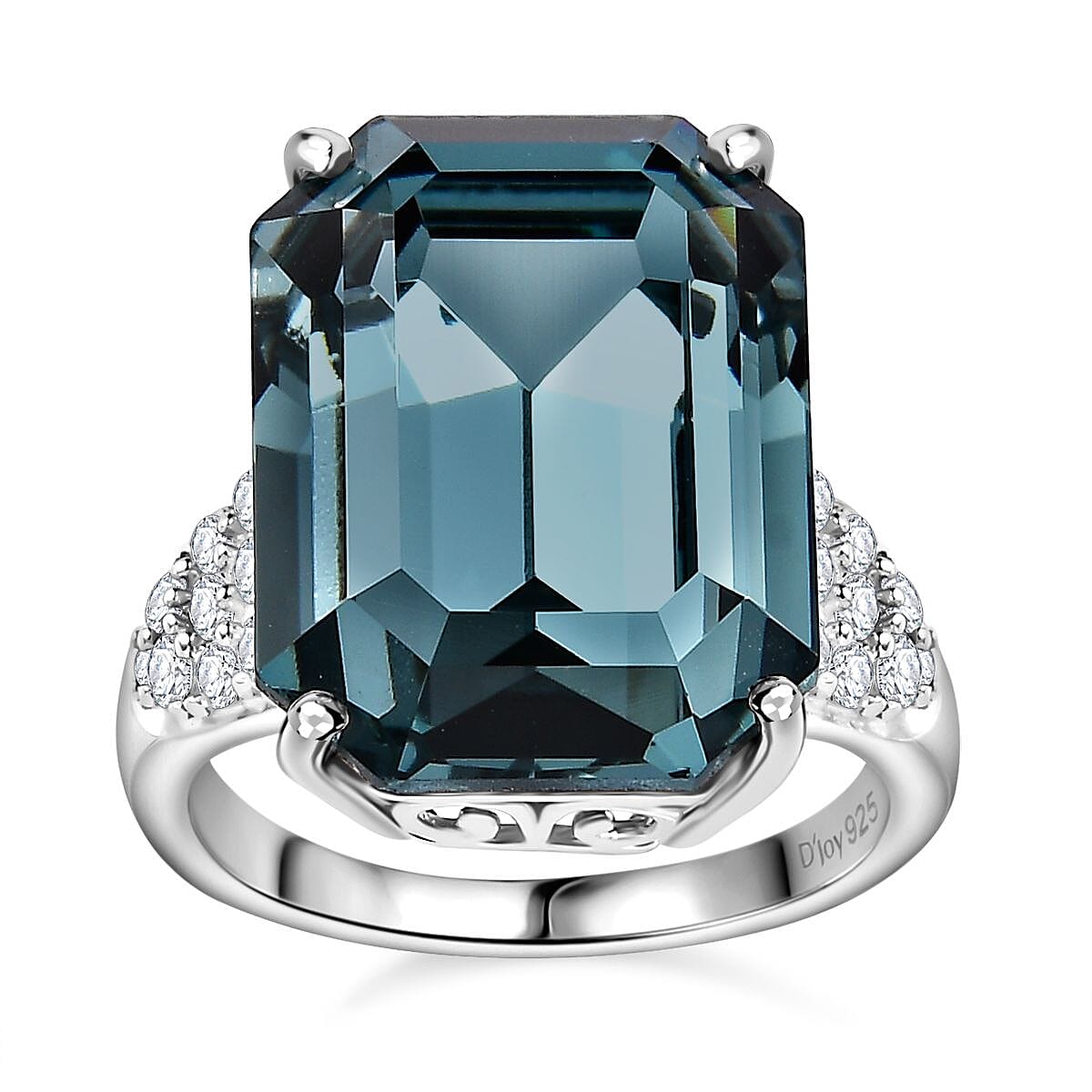 Indian Sapphire Color Crystal, Simulated Diamond Ring in Platinum Over Sterling Silver (Size 10.0) 0.70 ctw