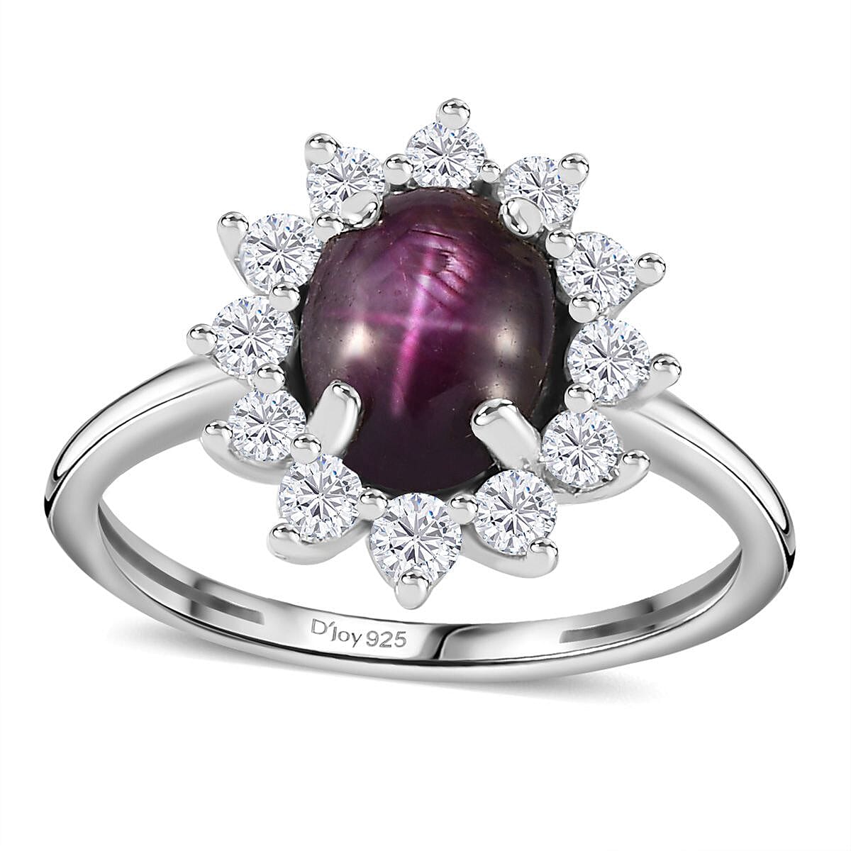 Indian Star Ruby and Moissanite Shining Star Ring in Rhodium Over Sterling Silver (Size 8.0) 2.65 ctw