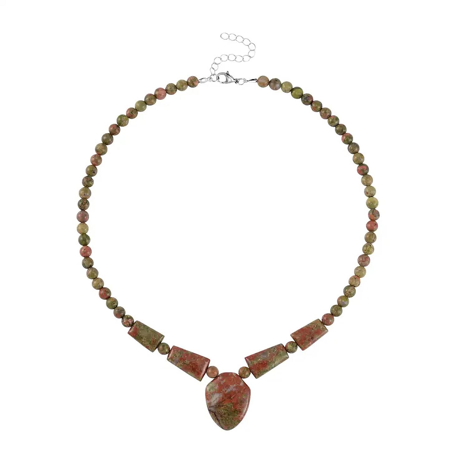 Indian Unakite Princess Necklace 18-20 Inches in Stainless Steel 205.70 ctw