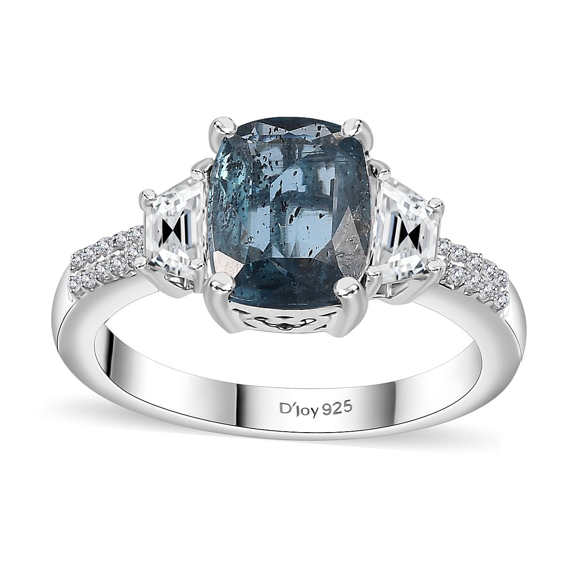 Indigo Kyanite and White Zircon 3.40 ctw Ring in Rhodium Over Sterling Silver (Size 10.0)