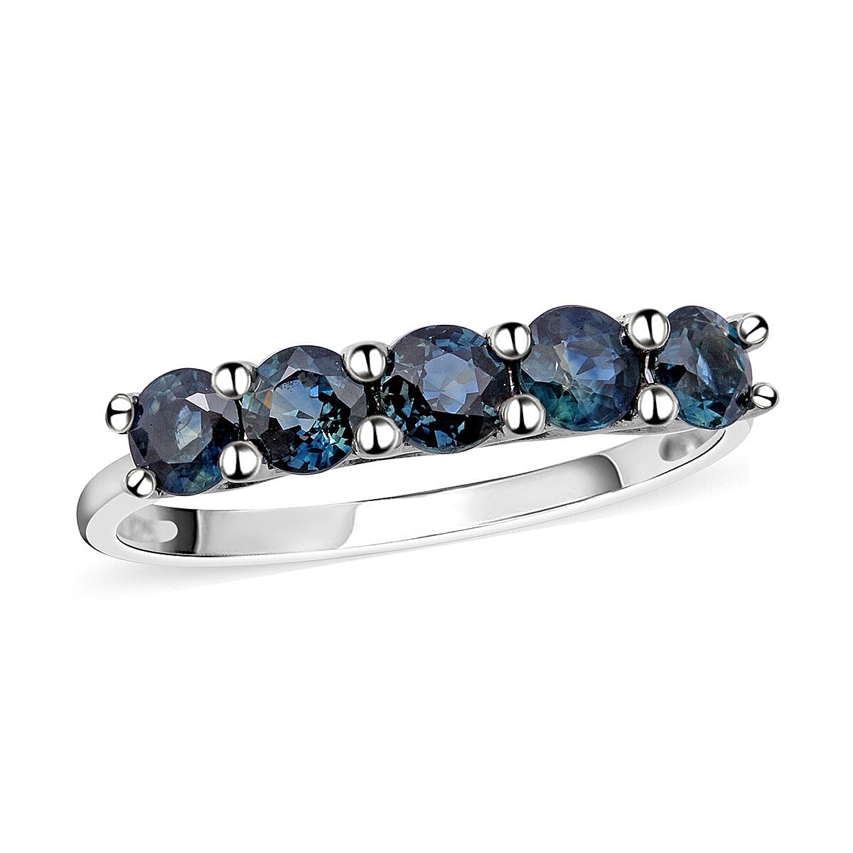 Indigo Sapphire 5 Stone Ring in Platinum Over Sterling Silver (Size 5.0) 1.00 ctw