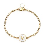Initial V Paper Clip Bracelet, Vermeil Yellow Gold Over Sterling Silver Bracelet, Initial Bracelet, White Enamel Coin Bracelet (7.25 In) 6.25 Grams