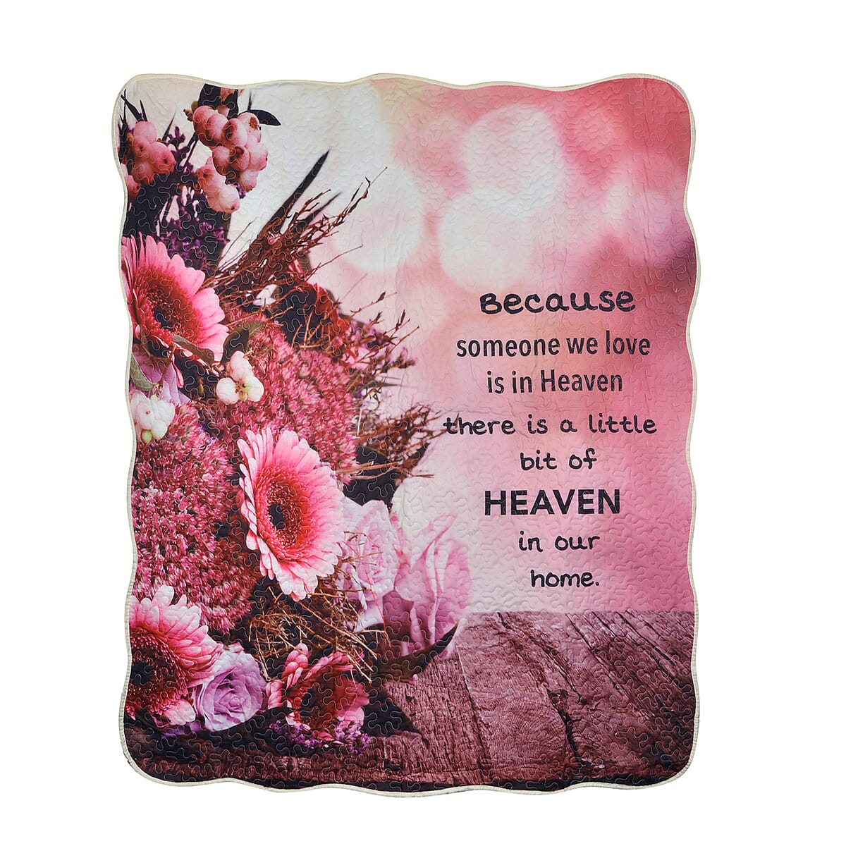 Inspirational Quotes Bed Throw Quilt Blankets - Heaven, Pink Floral (Ships in 8-10 Business Days)