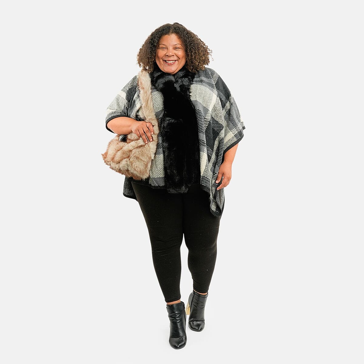Instyle Black Plaid Ruana and Ivory Purse Set - One Size Fits Most