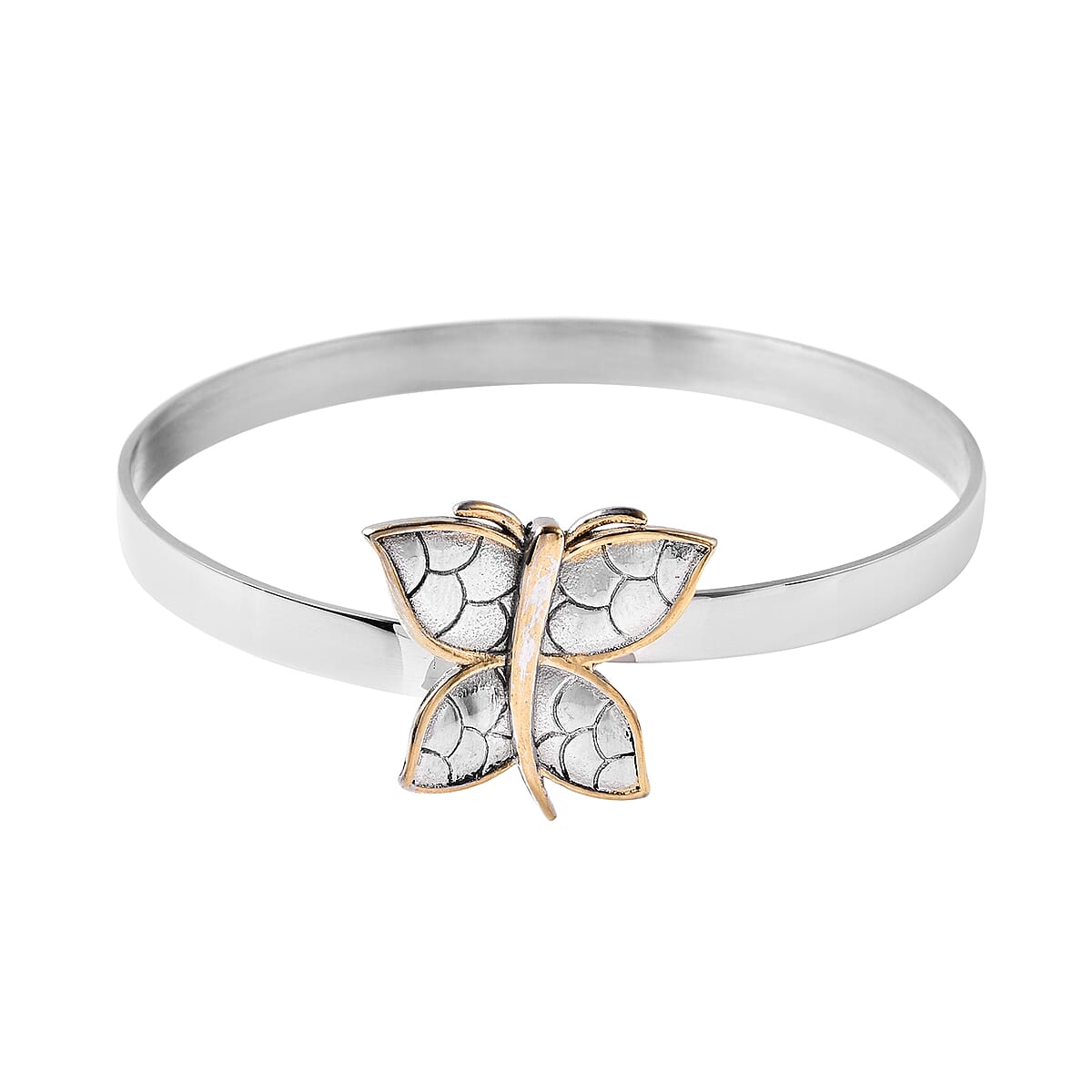 ION Plated YG & Stainless Steel Butterfly Bangle Bracelet (7.25 In)