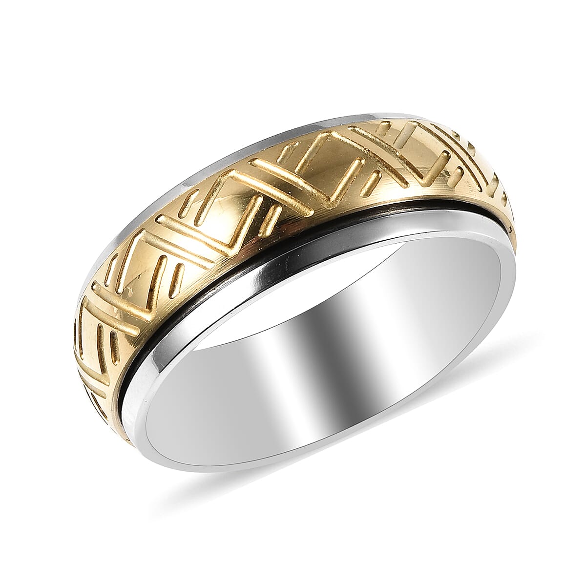 ION Plated YG & Stainless Steel Spinner Band Ring (Size 10.0)