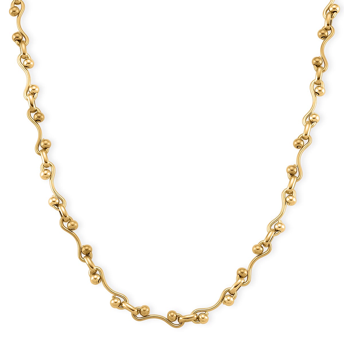 ION Plated YG Stainless Steel Modern Wave Link Necklace 20-22 Inches