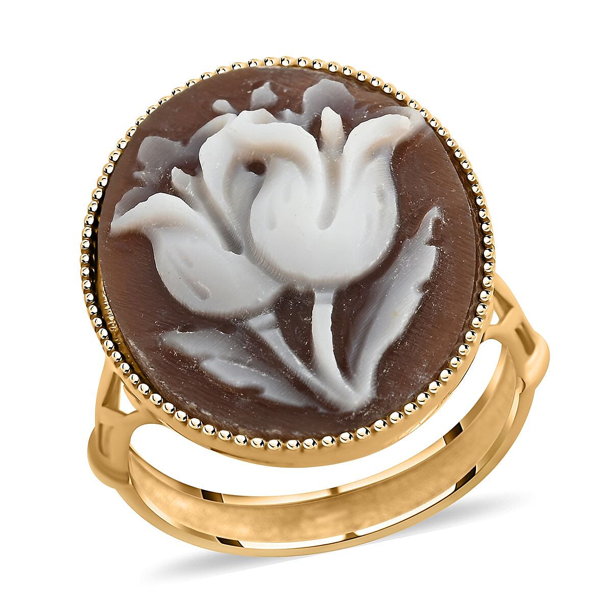 Italian 10K Yellow Gold Cameo Tulip Ring (Size 10.0) 2.50 Grams