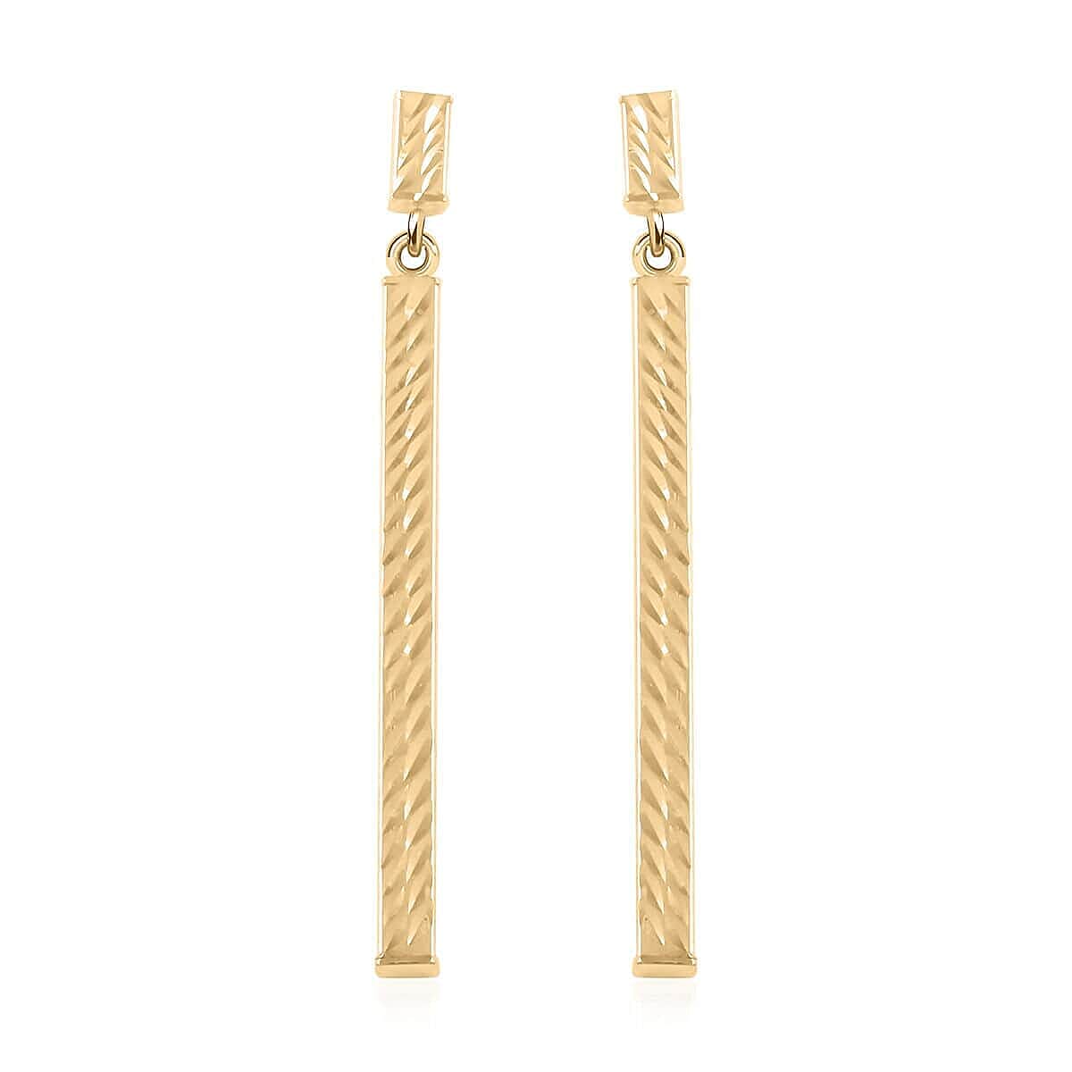 Experience the allure of Italian craftsmanship with our 10K yellow gold diamond-cut bar earrings. The smooth diamond-cut textures on the bars lend a gleaming appeal, making these earrings a captivating addition to any outfit. Completed with secure butterfly push backs, these dangle earrings for women are the embodiment of style and comfort.