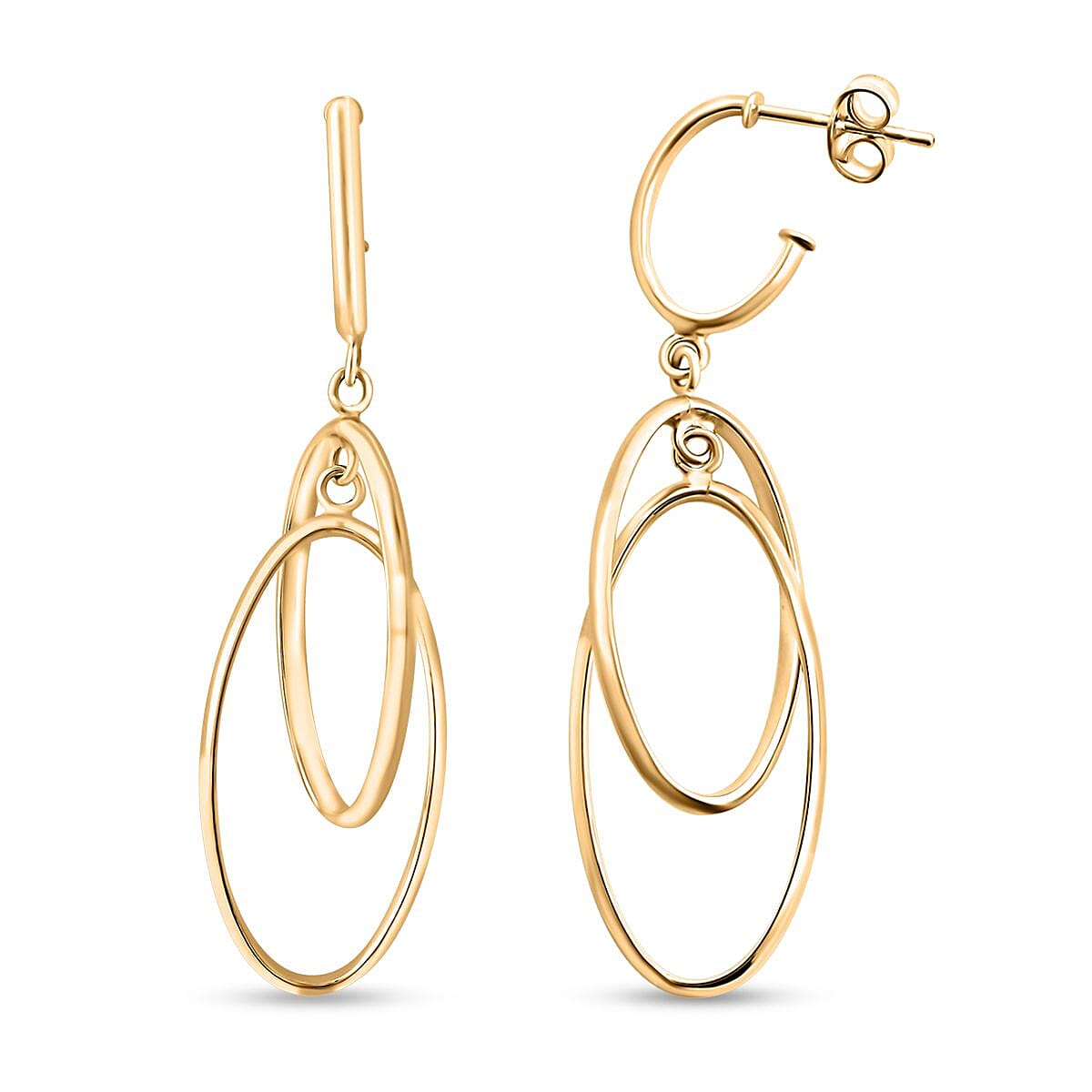 Italian 10K Yellow Gold Double Oval Drop Half Hoop Earrings 1.95 Grams