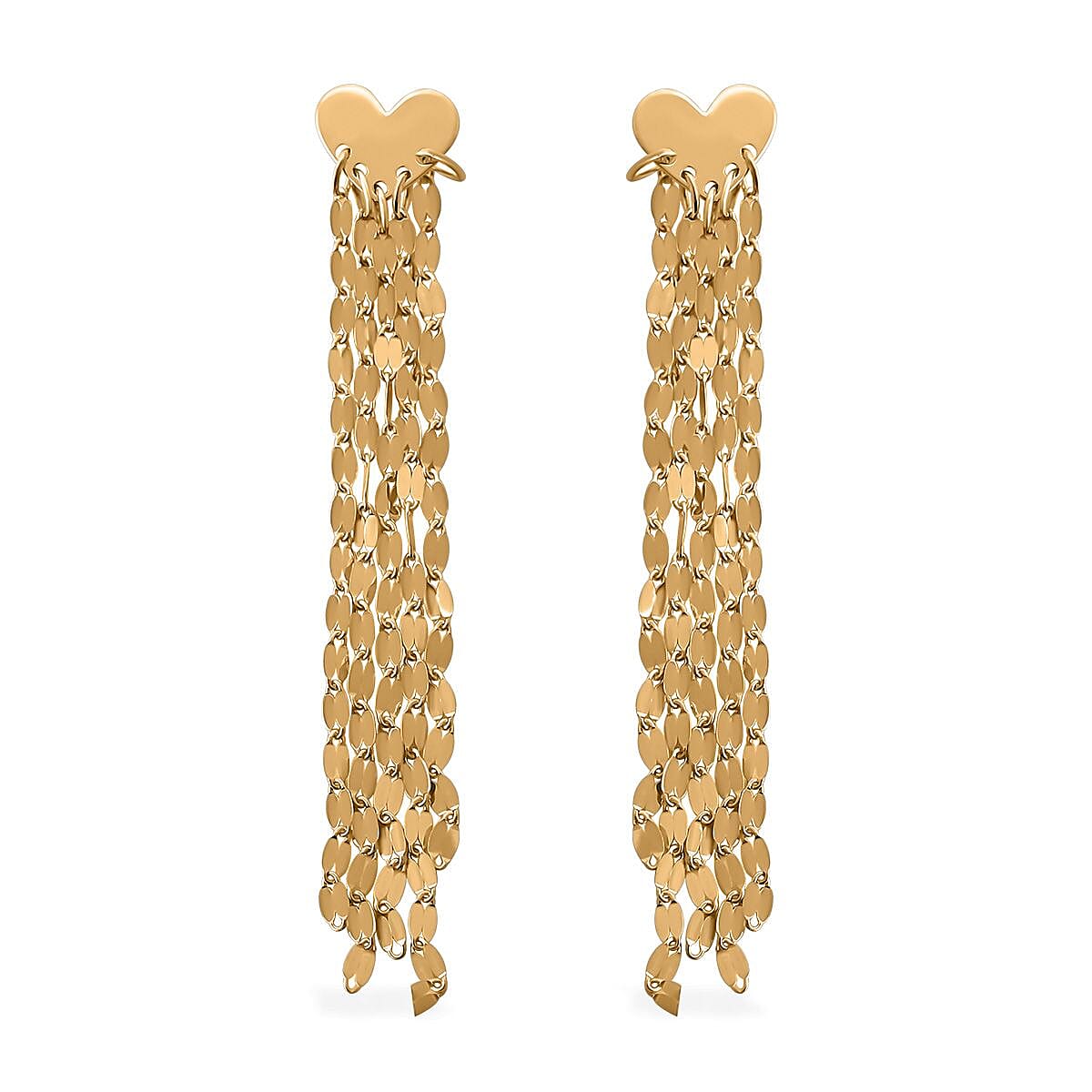 Italian 10K Yellow Gold Heart Mirror Tassels Earrings 1.35 Grams