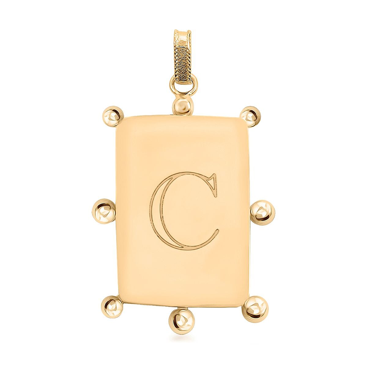 Italian 10K Yellow Gold Initial C Engravable Pendant