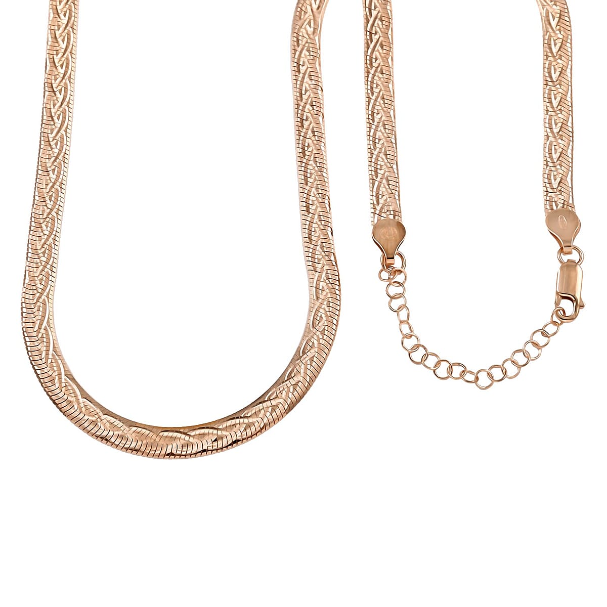 Italian 14K Rose Gold Over Sterling Silver 5.5mm Snake Chain Braided Design Necklace 18 Inches 12.80 Grams