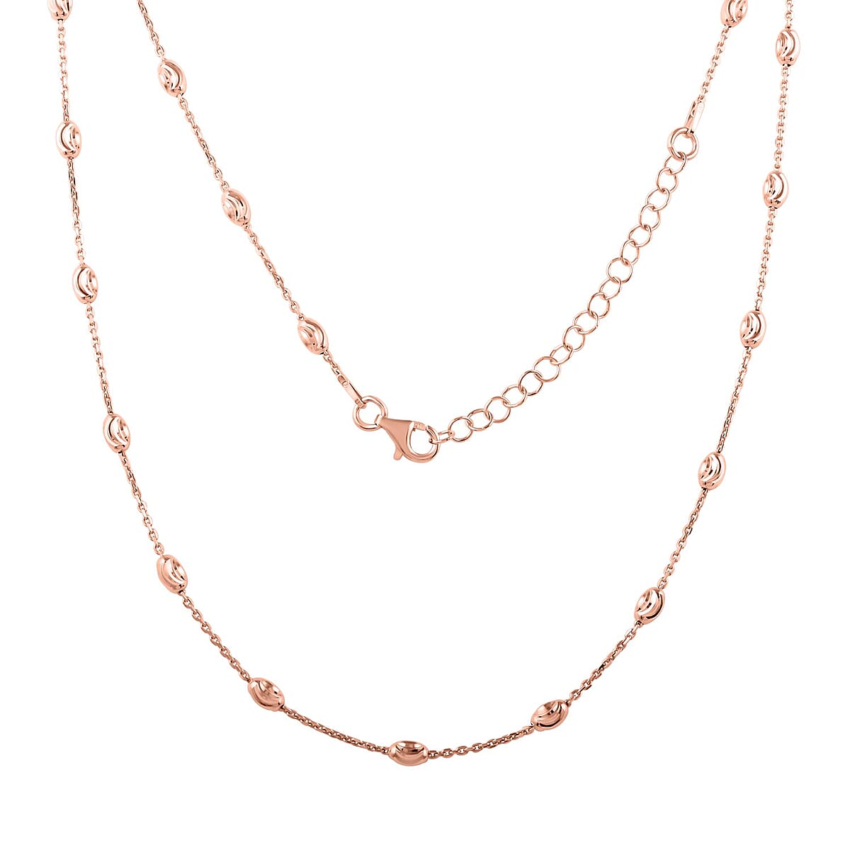 Italian 14K Rose Gold Over Sterling Silver Station Oval Moon Chain Necklace 18-20 Inches 4.10 Grams