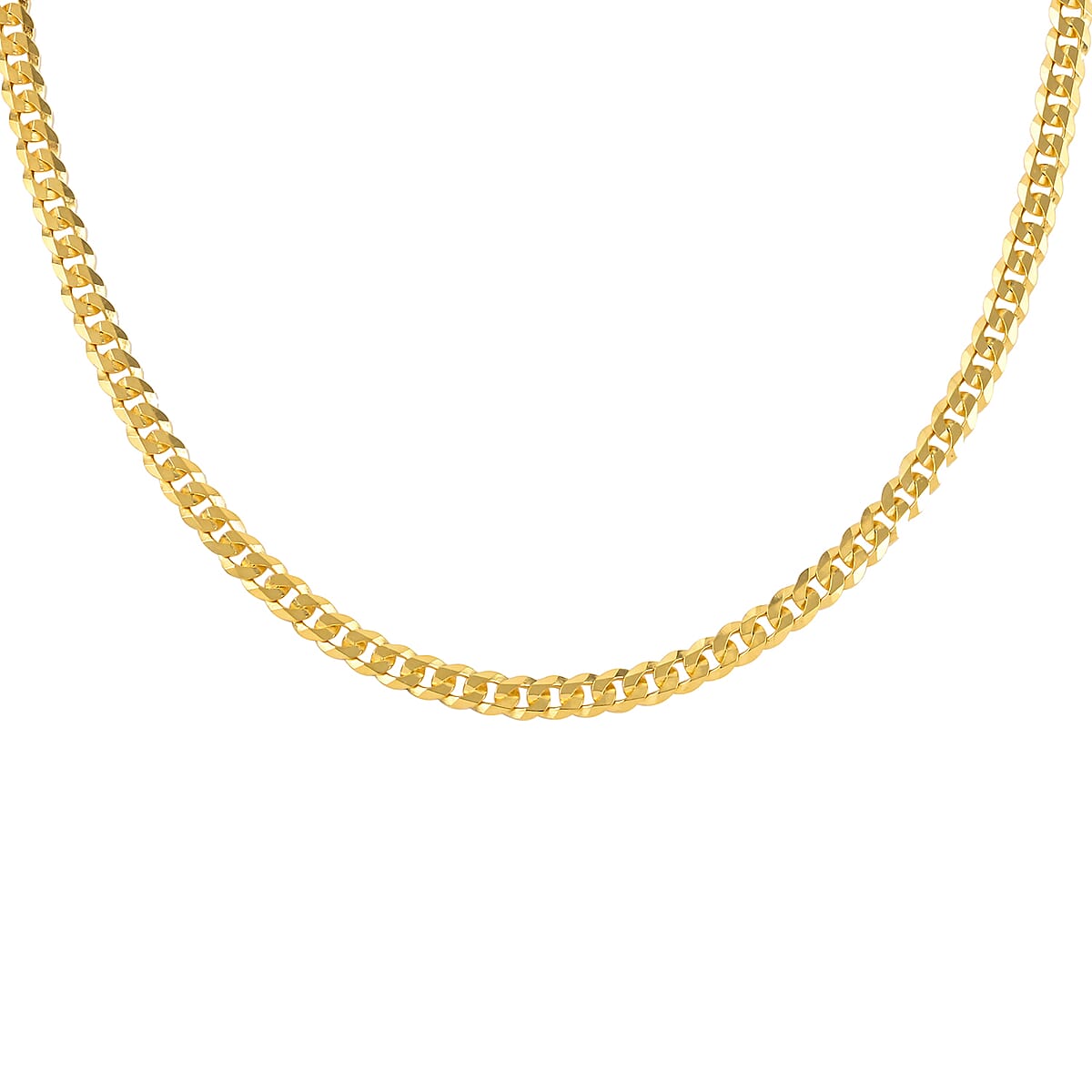 Inspired by antique-style linked chains, this flat curb necklace features links that have been flattened and twisted to interlock with round links to form a chain. A slight twist on the classic cable jewellery chain types, curb chains are popular in very fine formations and much chunkier variations, ideal for creating statement necklaces. The flat curb necklace design is an ageless classic design that is very edgy. It gently hugs your skin and adds an element of glamor to your style. Crafted in 14K yellow gold plated sterling silver, this matinee-length curb necklace features a designer clasp.