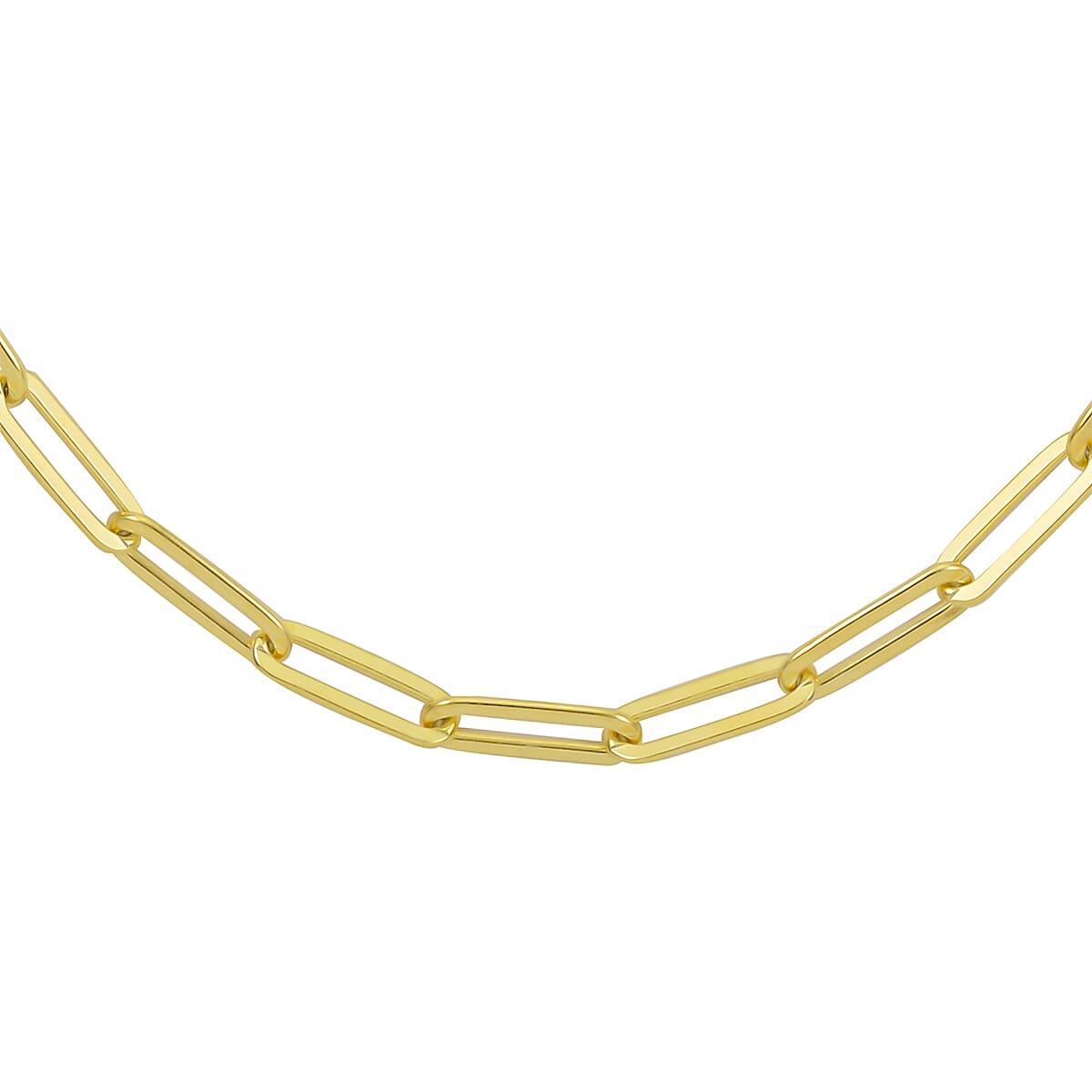 Paperclip chains are having a moment and we love it. They're fun and easy to style! This diamond-cut paperclip necklace is a compilation of interlocked diamond-cut elongated oval-shaped links. Paperclip necklaces represent unity and is a symbol of resistance. The Paperclip necklace trend is simple enough to be worn every day and by everyone. The paperclip isn't just an office staple. This necklace features 22 inches matinee length and is drenched in 14K yellow gold-plated sterling silver.