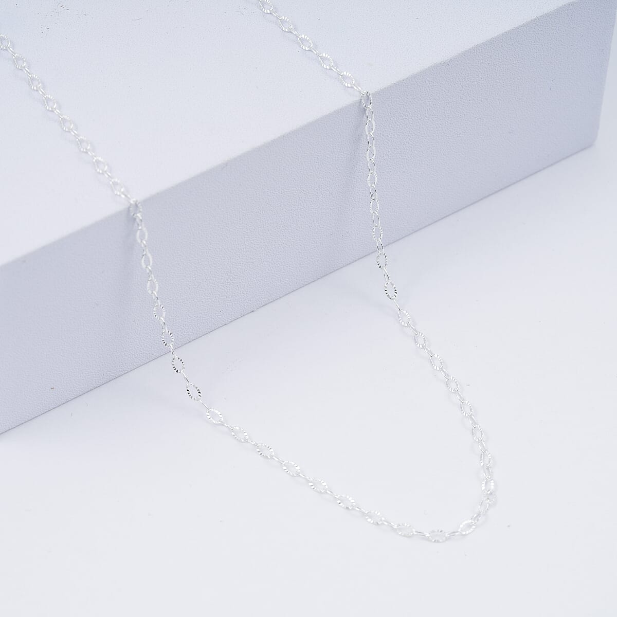 Italian Oval Drop Diamond-cut Chain Necklace in Sterling Silver 1.8 Grams (18 Inches)