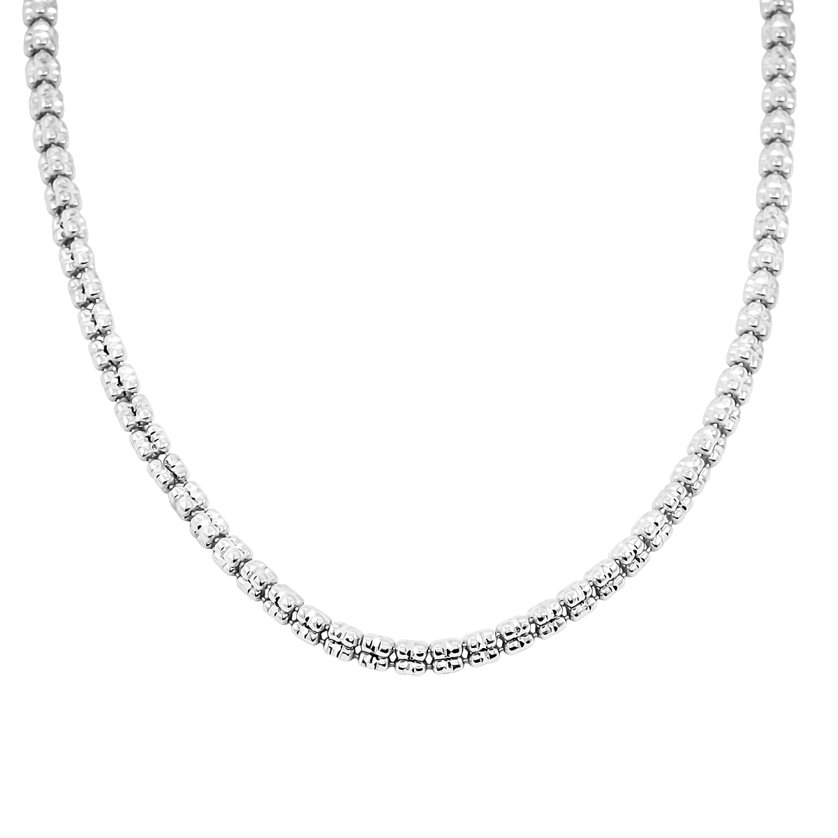 Italian Rhodium Over Sterling Silver Diamond Cut ICE Round Chain 3 Row Necklace 17 Inches 18 Grams