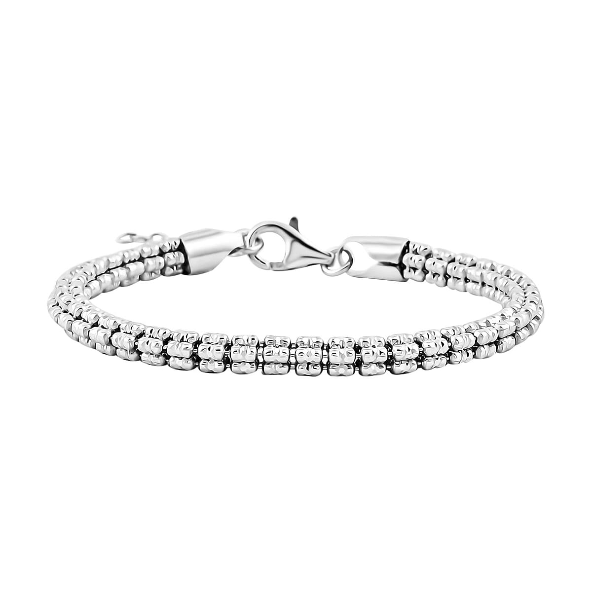 Italian Rhodium Over Sterling Silver Diamond-Cut Ice Round Chain 5 Row Bracelet (7.0-8.0In) 12.7 Grams