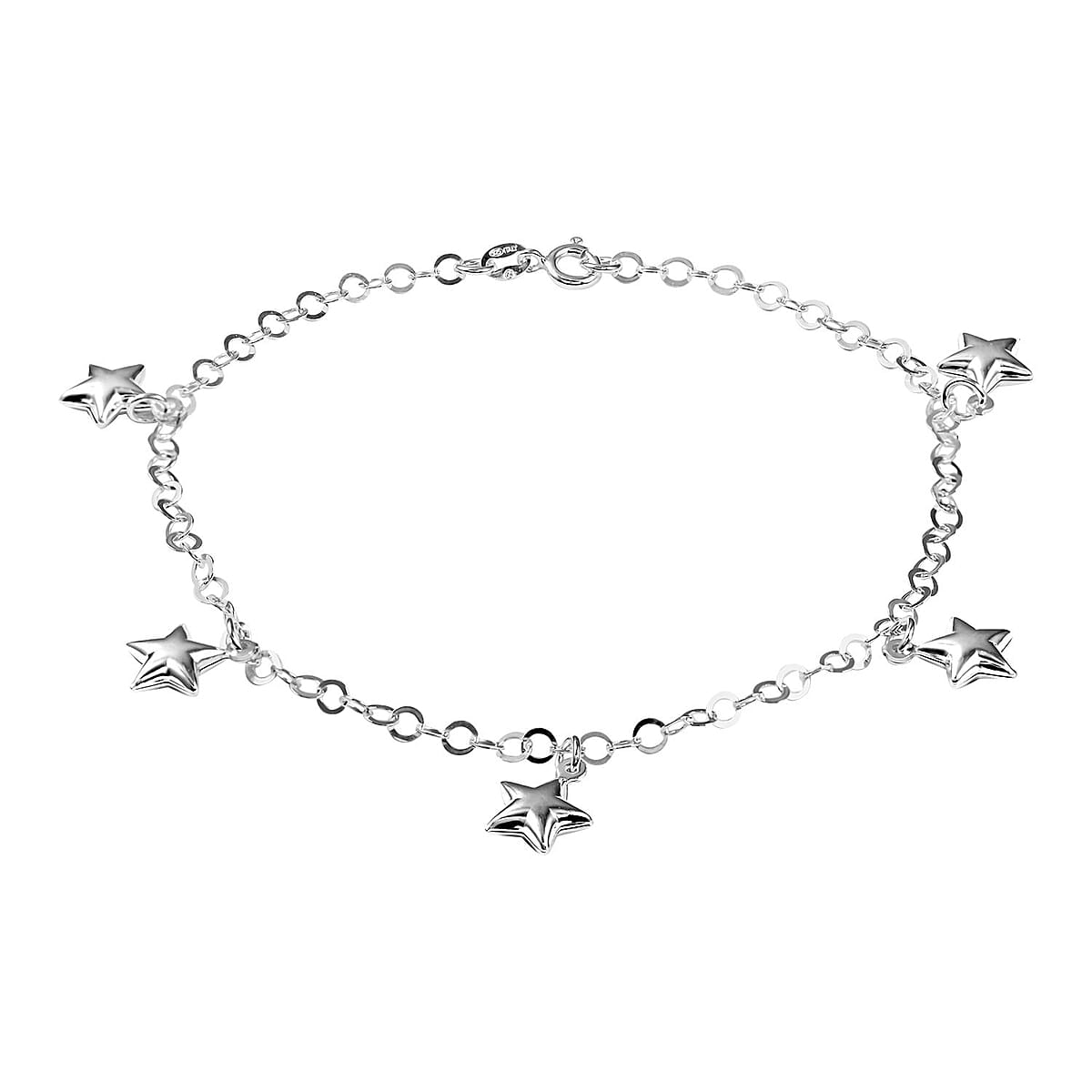 Italian Sterling Silver 3.5mm Rolo Chain Anklet with Star Charms (10 in) (4.20 g)