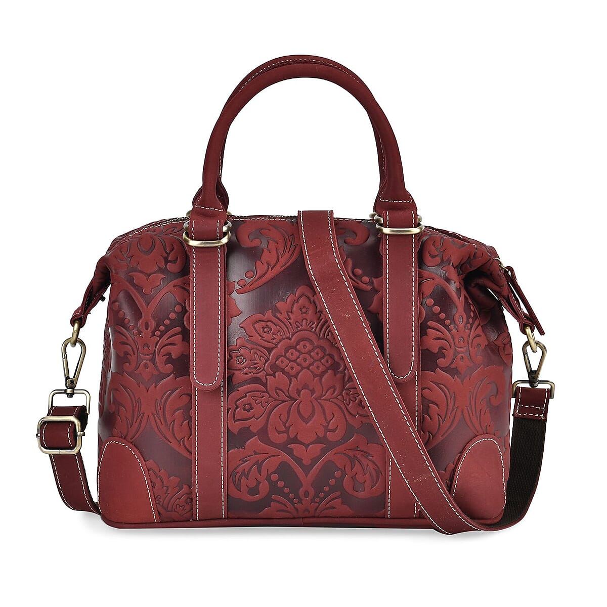 Italy Retro Noble Collection Burgundy Color Genuine Leather Crossbody Bag With Handle Drop and Shoulder Strap
