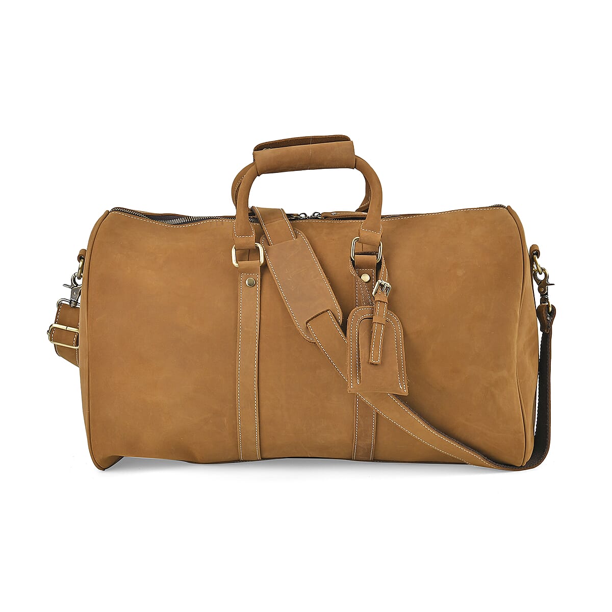 Italy Retro Noble Collection Camel Genuine Leather Travel Bag with Detachable Shoulder Strap