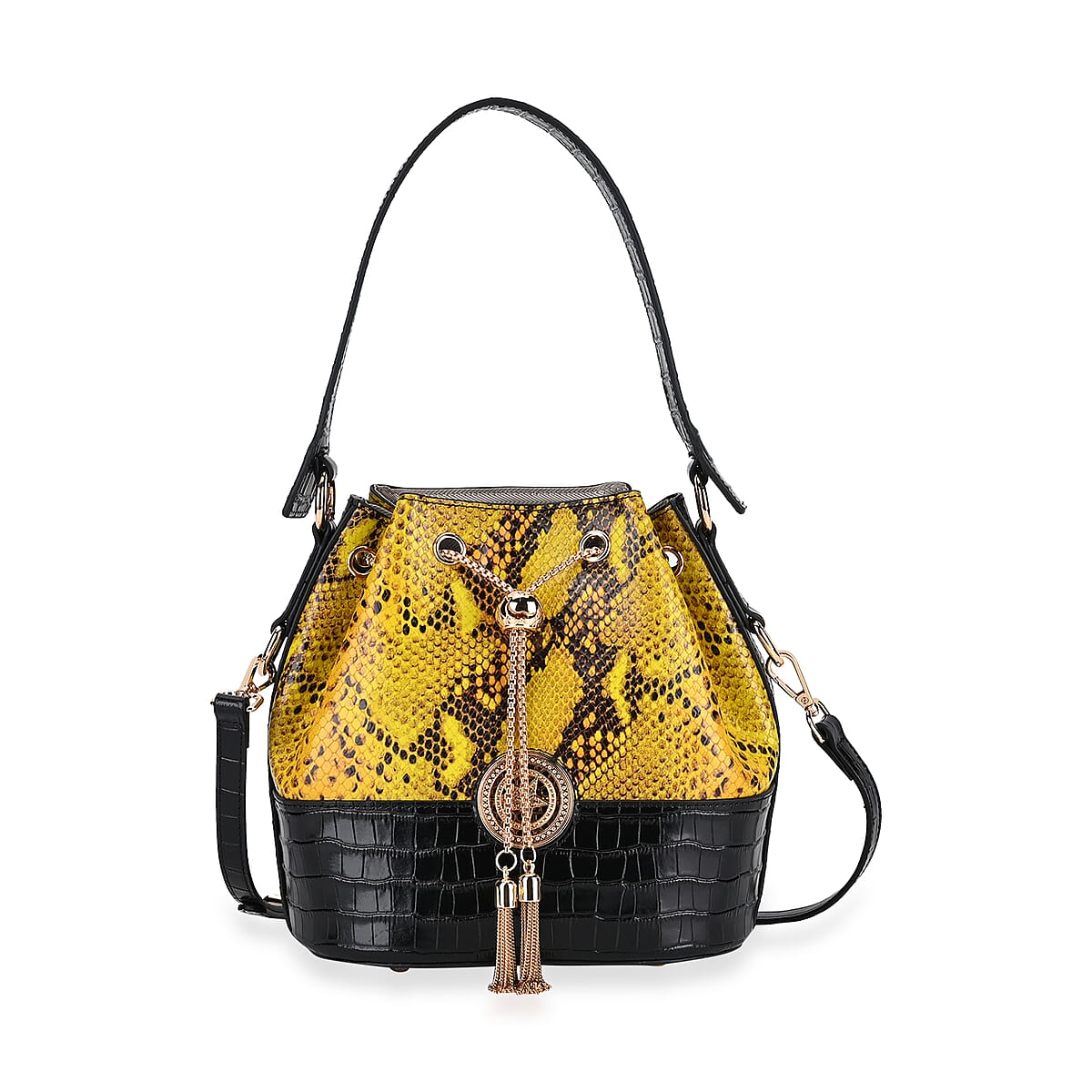Italy Retro Noble Collection Yellow Snake Print Genuine Leather Bucket Bag (8.3"X5.5"x8.8") with Shoulder Strap 51"
