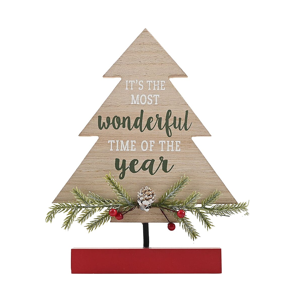 It's The Most Wonderful Time of The Year Tree Table Decor W/Greenery & Pinecone 9.5 & 8.5in Tall | Wooden Décor | Dining Room Décor | Wooden Art
