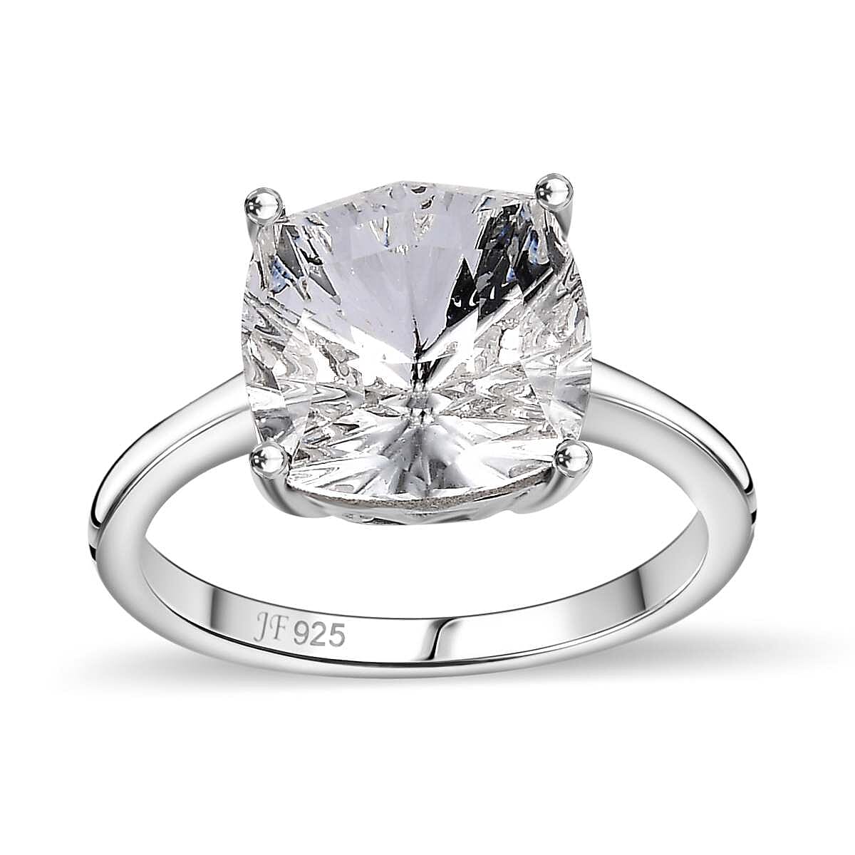 J Francis Embellished with Crystal by Swarovski Solitaire Ring in Platinum Over Sterling Silver (Size 8.0)