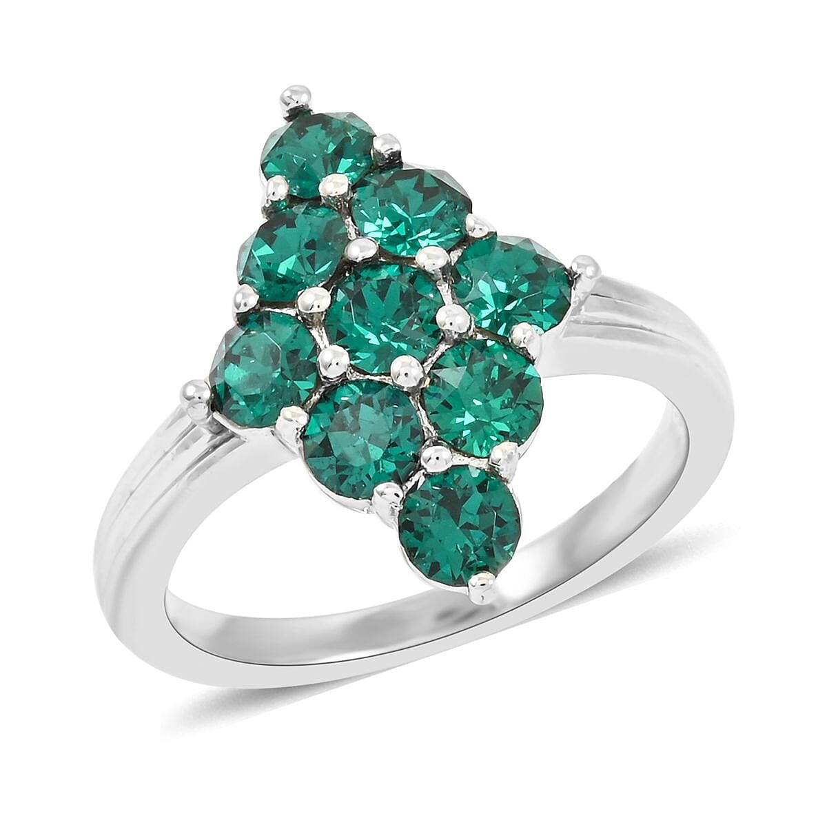 J Francis Embellished with Emerald Color Crystal by Swarovski Ring in Platinum Bond (Size 7.0)
