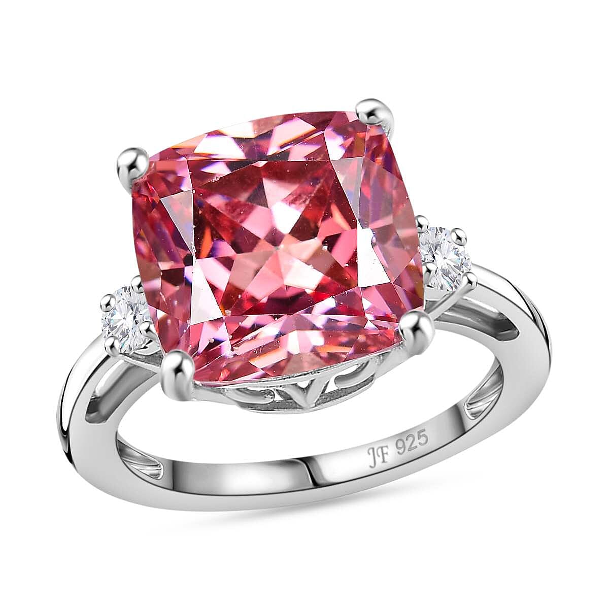 J Francis Embellished with Fancy Pink and White Zirconia by Swarovski 15.15 ctw Royal Elegance Ring in Rhodium Over Sterling Silver (Size 7.0)