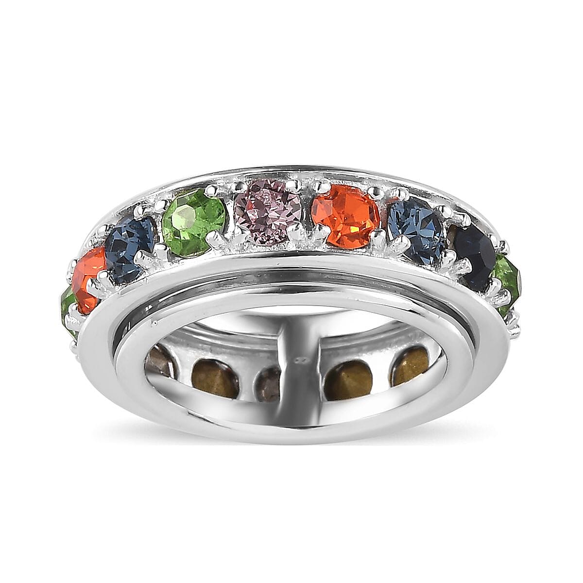 J Francis Embellished with Multi Color Crystal by Swarovski Spinner Ring in Platinum Bond (Size 5.0)