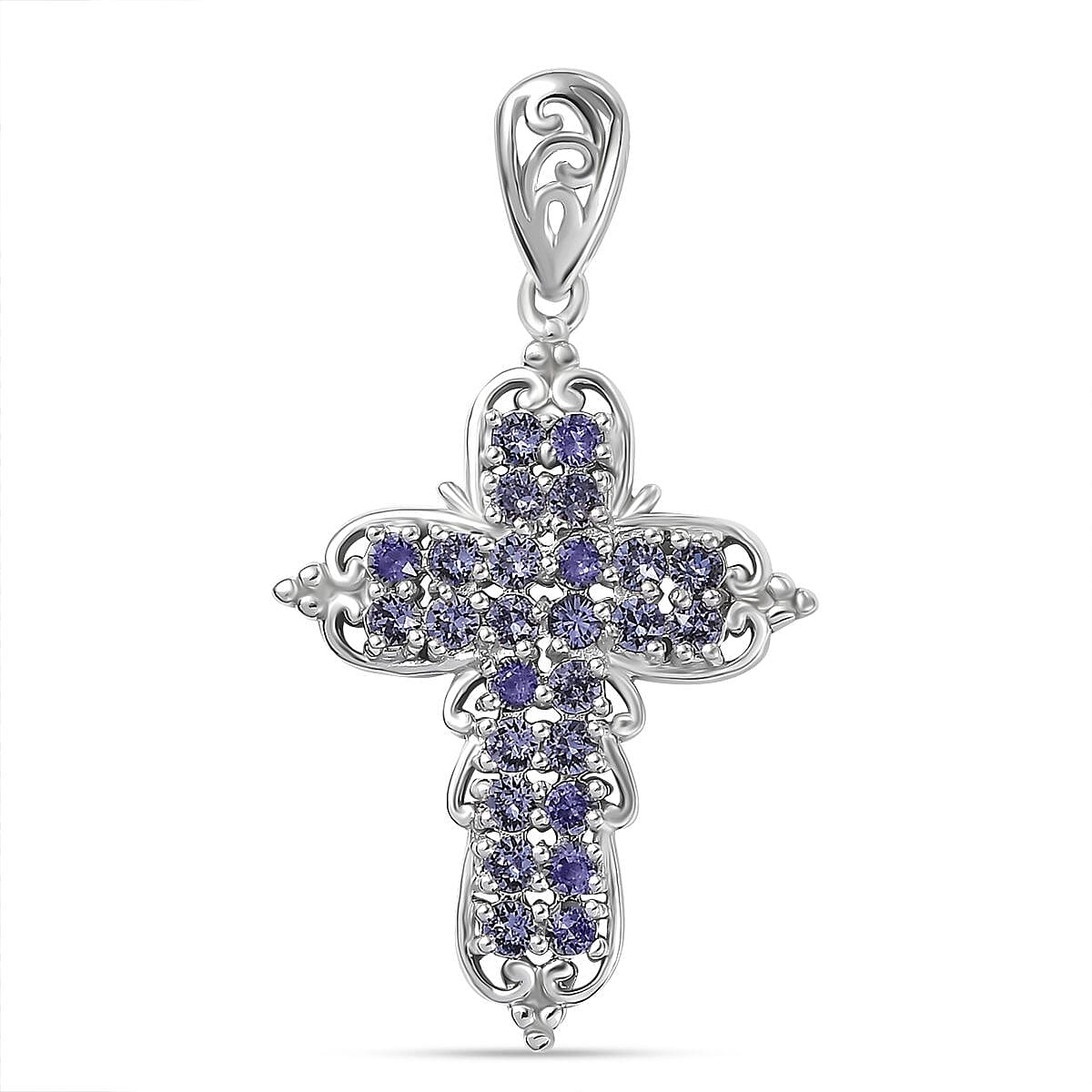 J Francis Embellished with Tanzanite Color Crystal by Swarovski Cross Pendant without Chain in Platinum Bond
