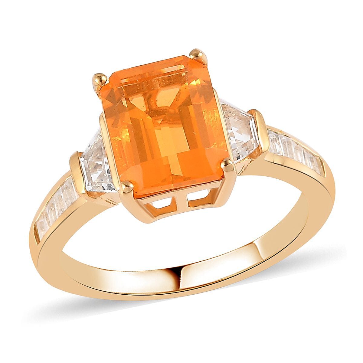 Jalisco Fire Opal and White Topaz Ring in Vermeil Yellow Gold Over Sterling Silver (Size 7.0) 2.40 ctw