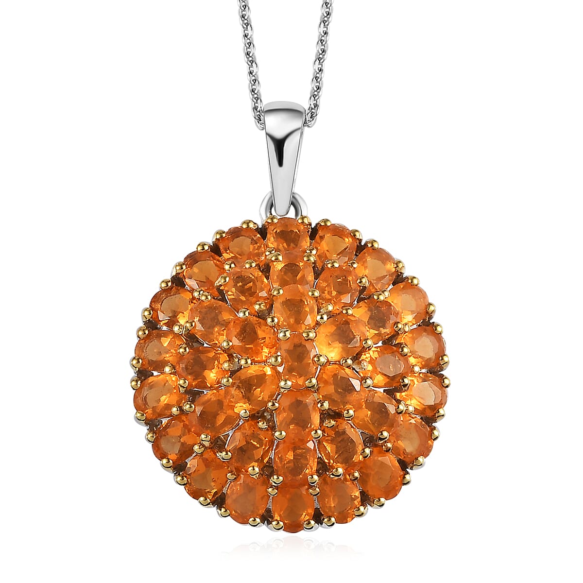 Jalisco Fire Opal Floral Pendant Necklace 20 Inches in Platinum Over Sterling Silver 4.40 ctw