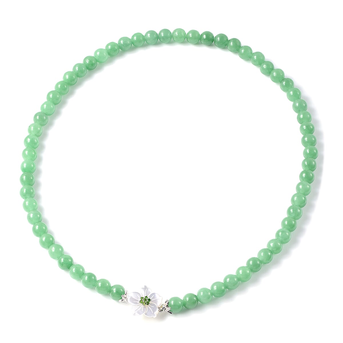 JARDIN COLLECTION Mother of Pearl, Green Jade and Natural Chrome Diopside Carved Flower Charm Beaded Necklace 18 Inch in Sterling Silver 276.20 ctw