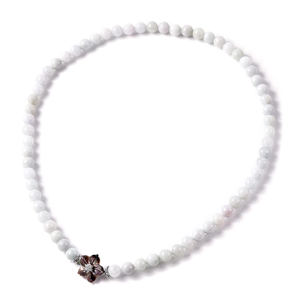 Jardin Collection Mother of Pearl, Natural Jade and White Zircon Carved Flower Charm Beaded Necklace 20 Inches in Sterling Silver 275.25 ctw