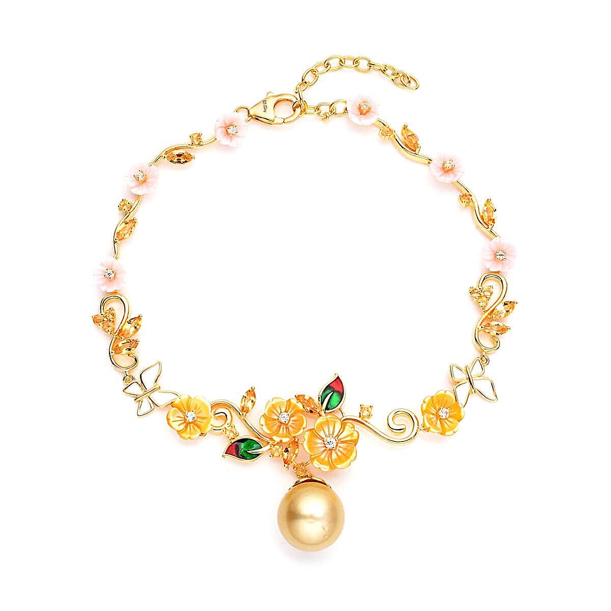 Jardin Collection South Sea Pearl and Carved Mother Of Pearl , Multi Gemstone Bracelet in Vermeil YG Over Sterling Silver (9.50 In) 2.35 ctw
