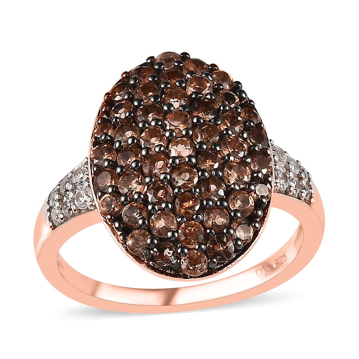 Elevate your style with the mesmerizing Jenipapo andalusite cluster ring. Crafted with sterling silver and rose gold vermeil, this enchanting piece features a cluster design adorned with prong-set Jenipapo andalusite gemstones. Delicate white zircon accents on the shank add a touch of sparkle, making it a must-have for any jewelry connoisseur.