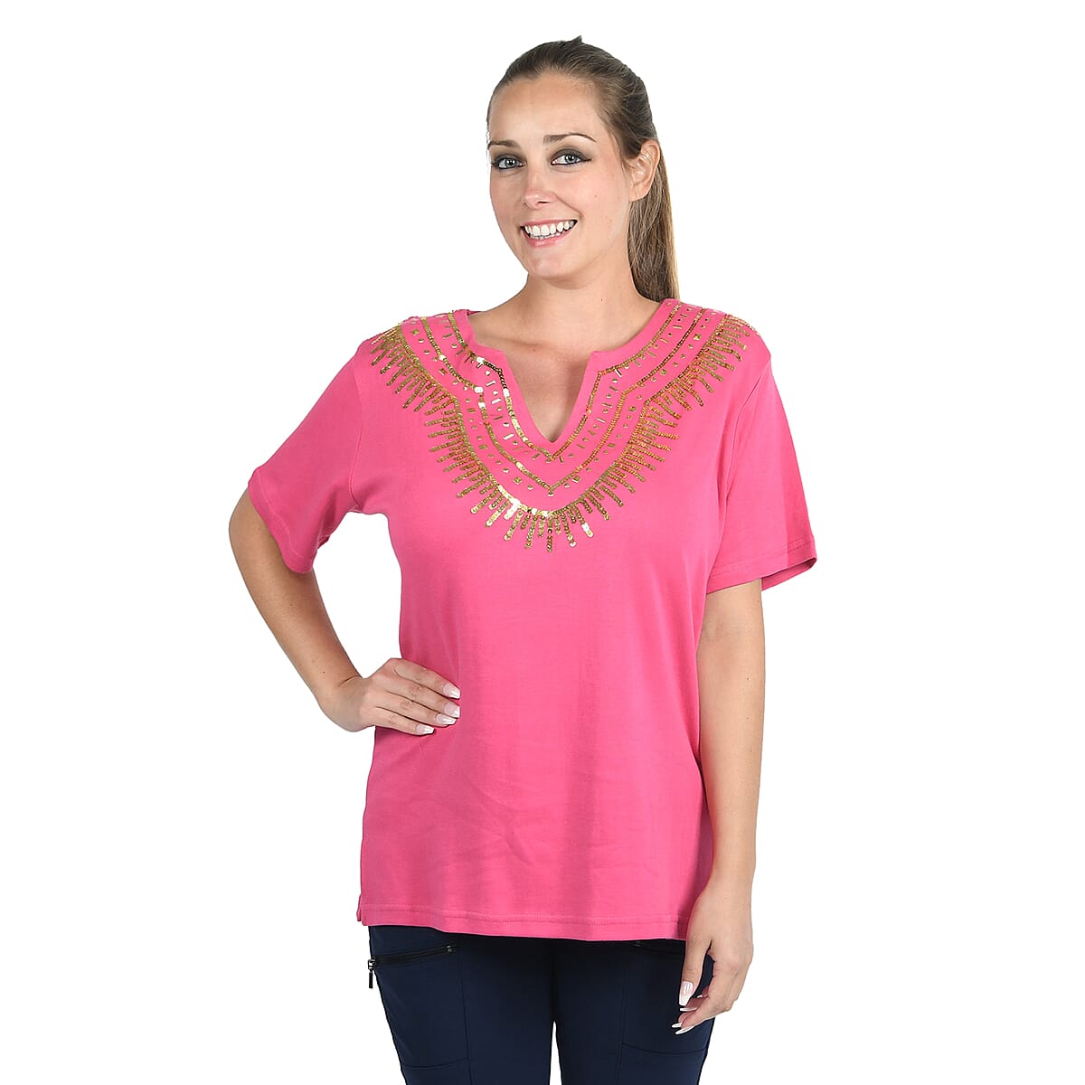 JOVIE Hot Pink Embellished T-Shirt - XL