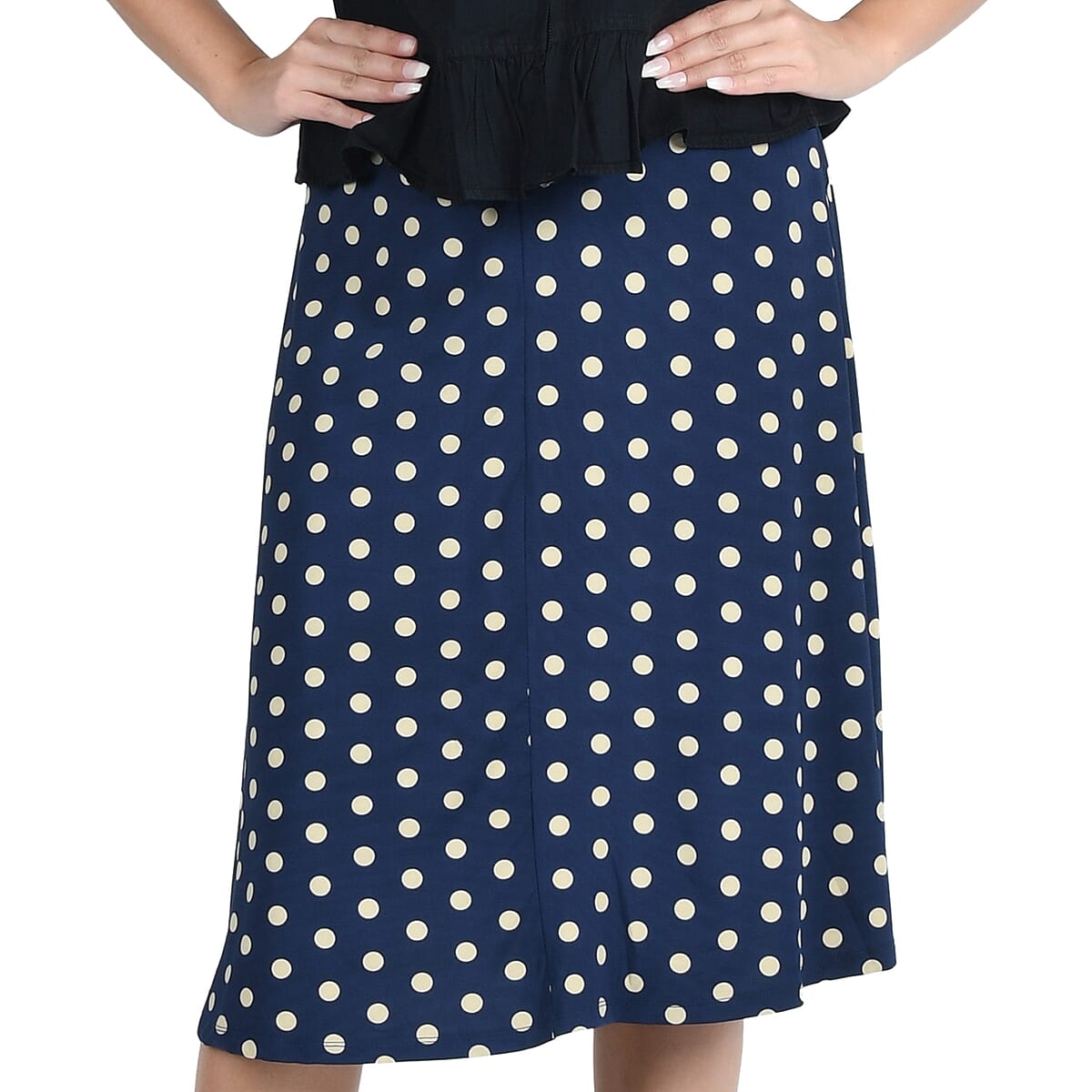 Jovie Navy & White Polka Dot Print Midi Skirt - L
