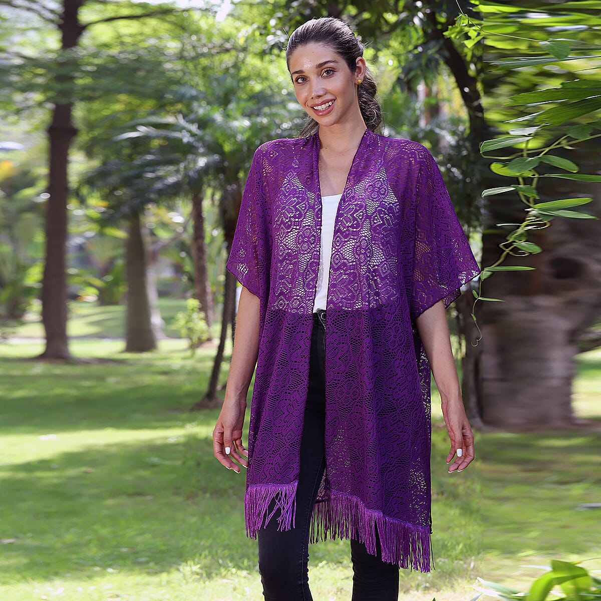 JOVIE Purple Lace Kimono for Women with Fine Fringe Hem | Open front Kimono | Ladies Kimono