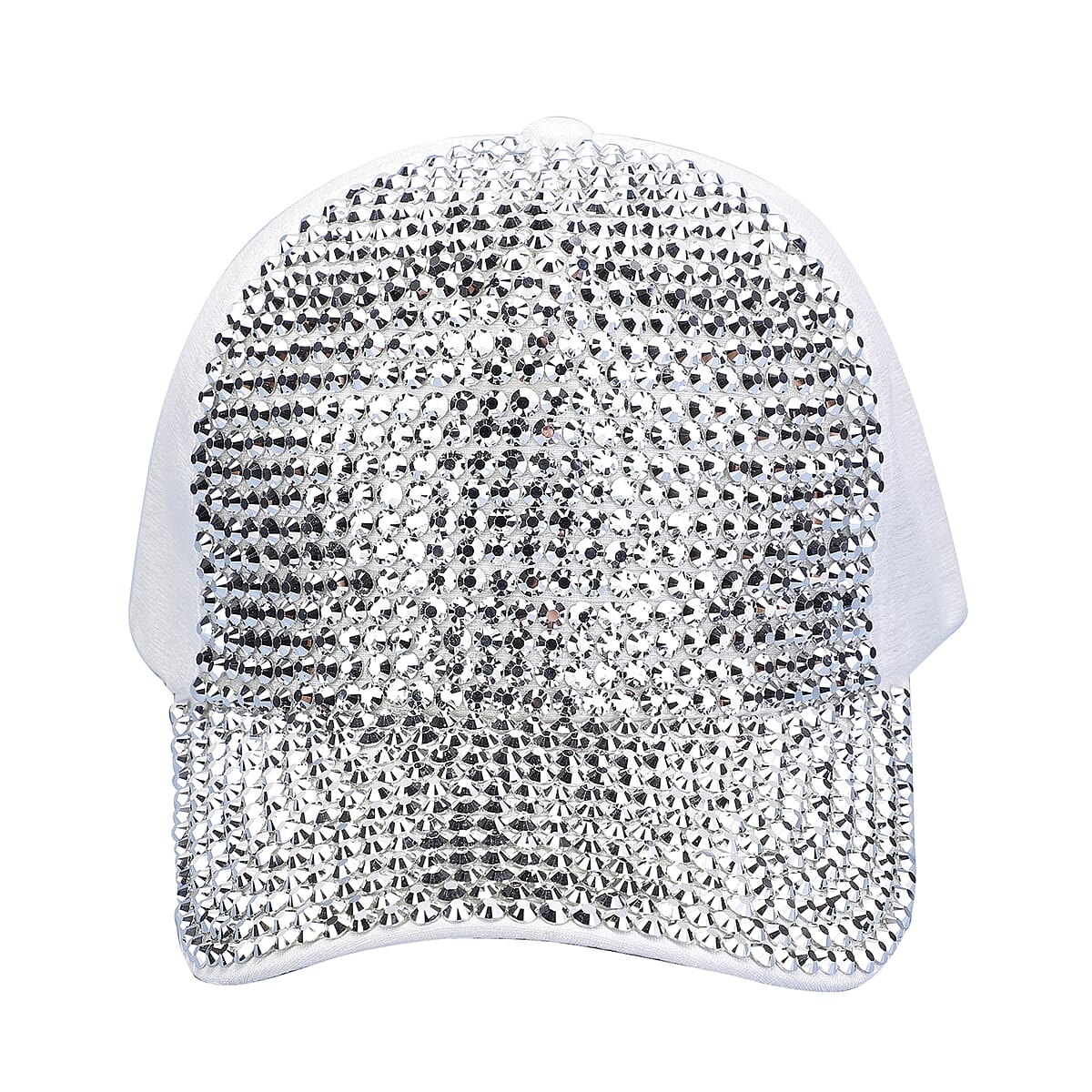 JOVIE Silver Rhinestone Bling Front Hat with Adjustable Strap