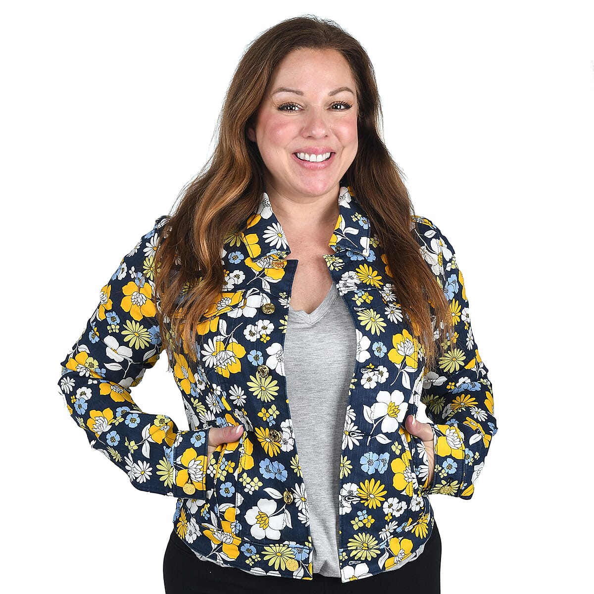 JUICY COUTURE Navy Daisy Print Zip-up Collared Jacket - S