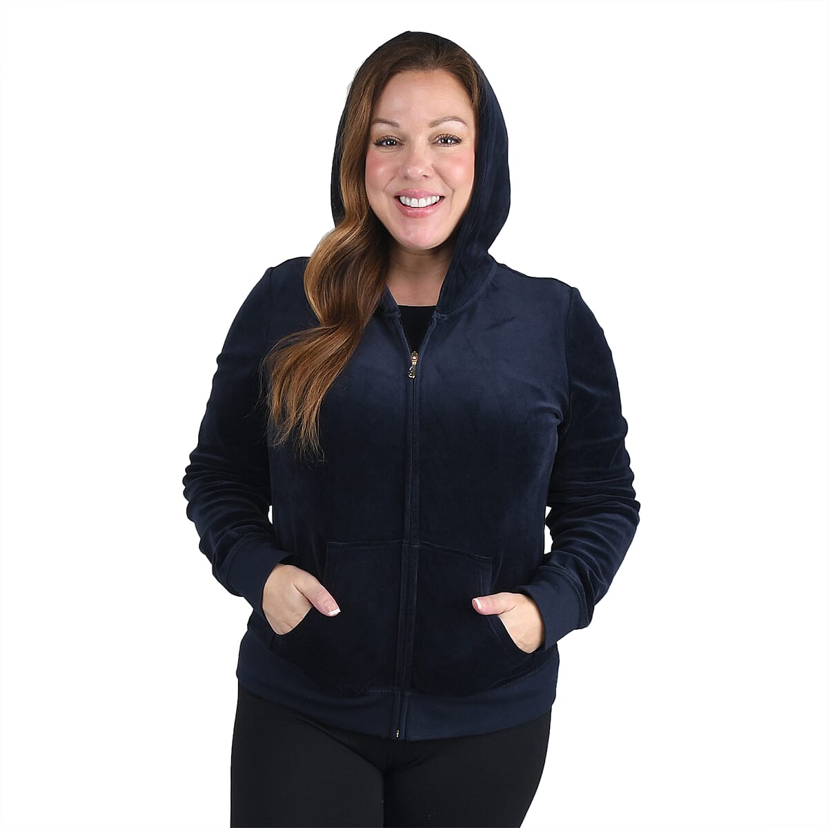 JUICY COUTURE Navy Velour Zip-up Hooded Jacket with Monogram - XS